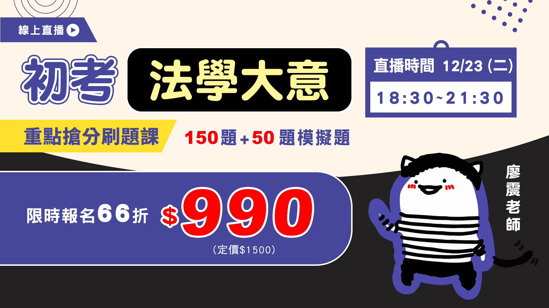 即時影音|法學大意搶分刷題課(線上直播) 03:00:00